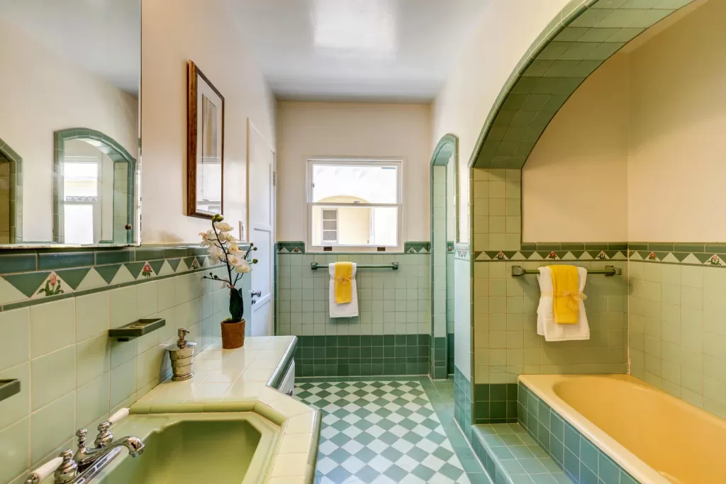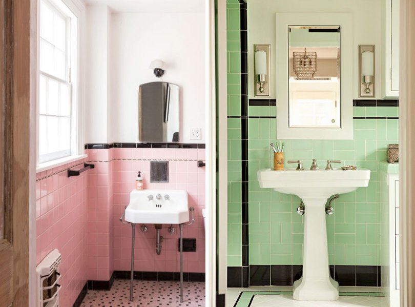 Low-cost items like simple tile were used in bright colors and patterns to create an on trend look at an affordable price. We can thank the 1930s for those fabulous pink or green-tiled bathrooms that we all see in photos of old homes.