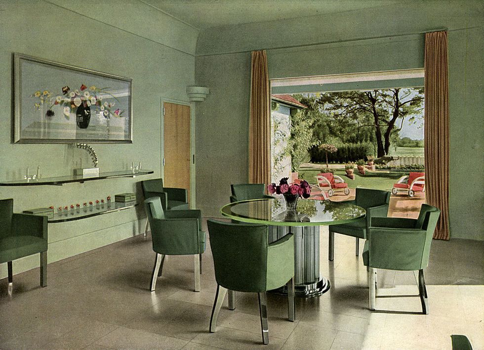 The 1930s was a mash-up of old and new. The elegance and abundance of the 1920s was reimagined by using saturated colors which mimicked the opulence of headier times. Punches of pattern and color came in the form of rugs, chairs, and artwork. Sofas become lower and longer and more sleek. The flourishes of the past century were put aside for more streamlined looks that could be mass-produced.