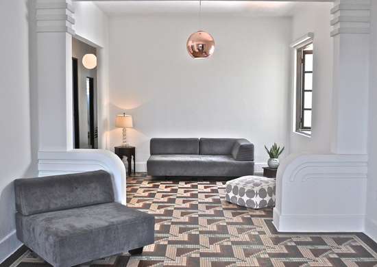 Getting the look of the 1930s starts with the colors. The colors on the paint color chart at the top of the post are soft and muted. Add decorative accessories in those colors, use them on the walls with more neutral modern designed furniture or find a vintage wood piece from the era and refresh it with era appropriate paint. Don’t forget your floors–a painted floor can also anchor a room.