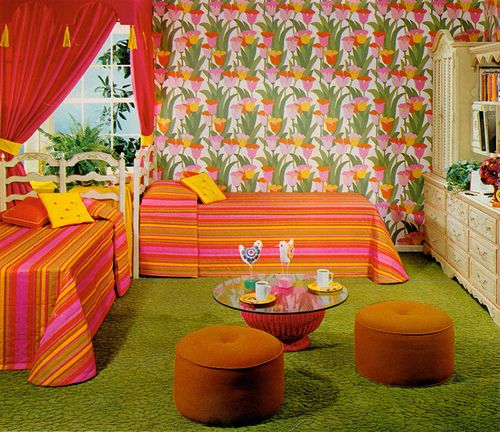 Shag carpet, textured walls, sink-in sofas, and recliner chairs begat comfort. The look was laid back and made for relaxing, but the colors reflected the rebellion of the era.