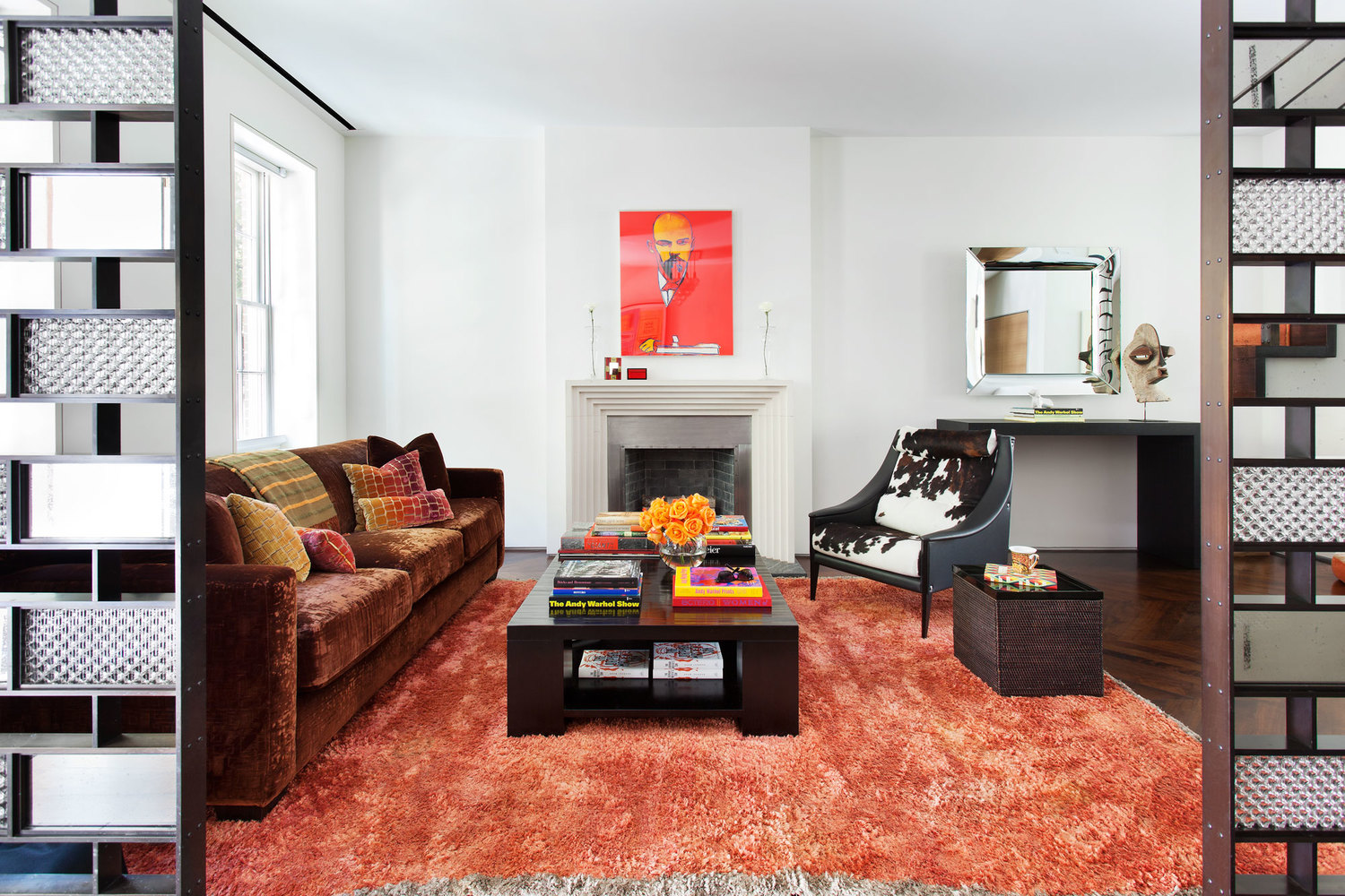 Orange, yellow, pink, and purple were attention-getting colors that could be found throughout the home from the bedroom to the bath, living room, and kitchen. These colors were saturated, not soft and understated.