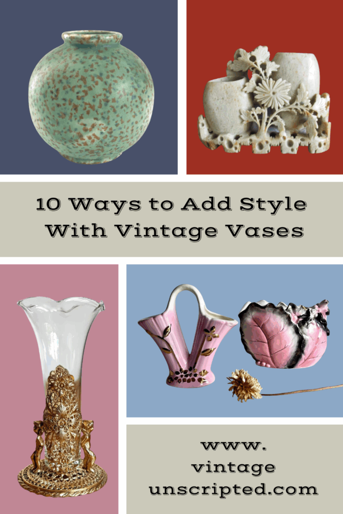 These are just 10 ways to add style with vintage vases. How many more ideas can you think of? Where is your favorite unexpected place to use a few snips of fall flowers in a vintage vase? And even more important, what is your most essential vase for all those carefree arrangements? Share your ideas in the comments section.