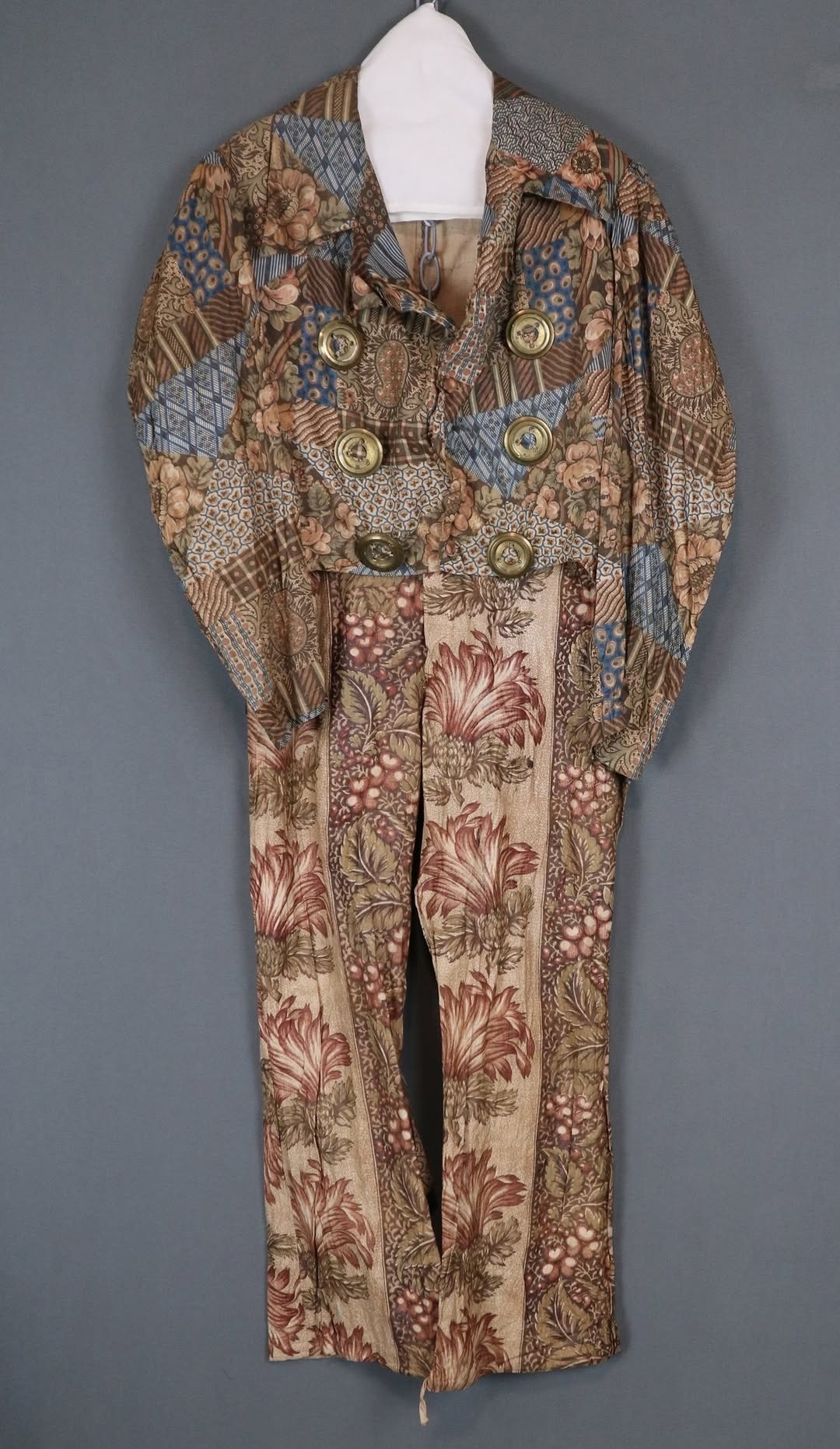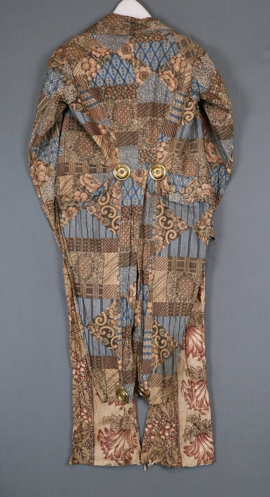 I became interested in the subject after seeing a post on Facebook by Historic Northampton (Massachusetts) that included these photos of an antique suit made of calico. The photos below were taken by Bassett and Schyler Fohrhaltz-Burbank and used with their permission.