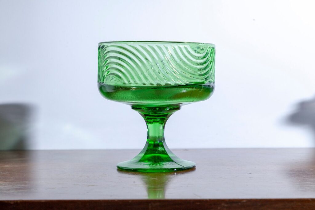 Think of all the things you could do with this green pedestal compote. It’s a nice height, luscious color and the wavy sides are perfect. Available from Vintage Curio City, $24.