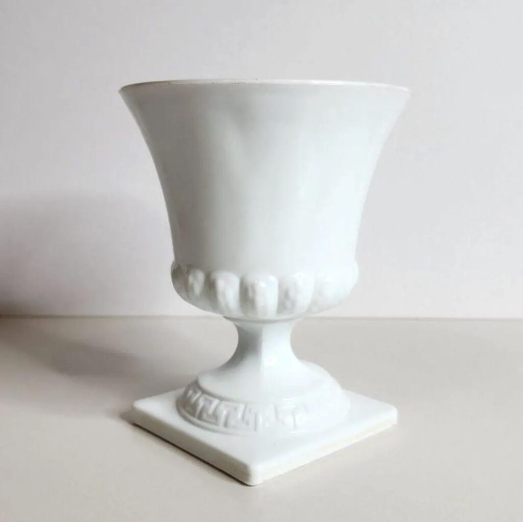 This Greek urn inspired piece is an E.O. Brody classic. Oh heck, it’s more than that, it’s a decor classic. Standing 7″ tall, it’s as useful as it is elegant. I will confess to capturing two in the wild and keeping them as mine, mine, mine. This one is available from Convivial Vintage, $42.99