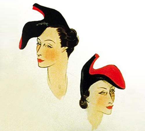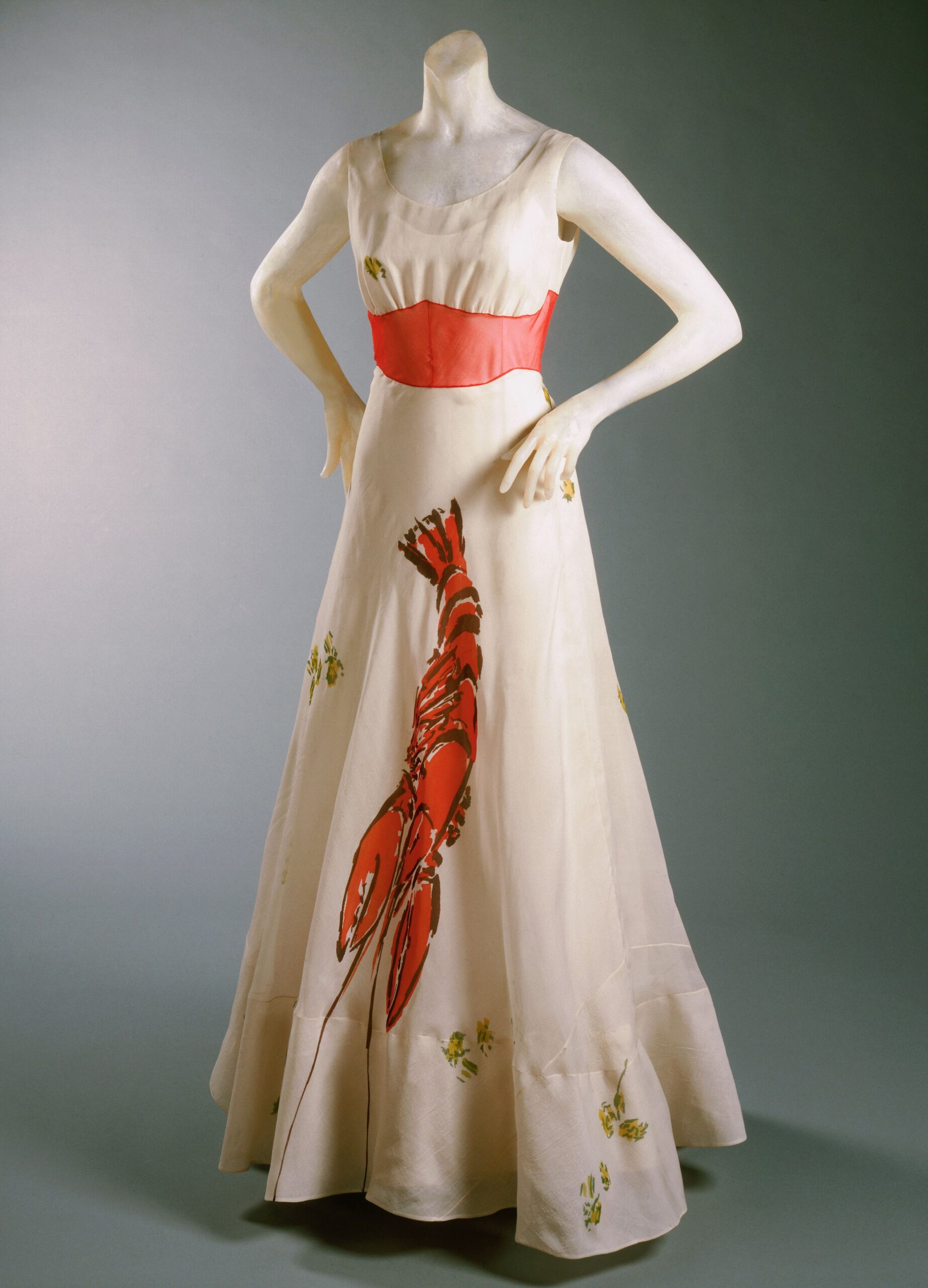 The 1930s brought Elsa Schiaparelli into the limelight again via her collaborations with Salvador Dali and Jean Cocteau. Her Lobster Dress and Shoe Hat created with Dali are legendary as is her evening coat created with Cocteau.