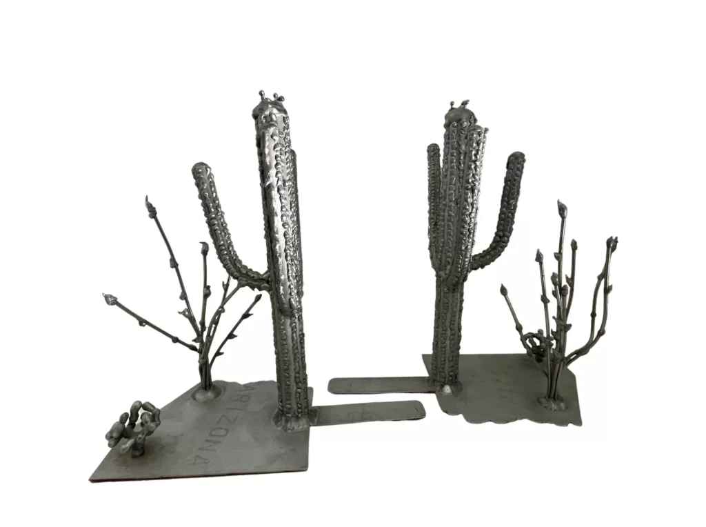 Decorative Sculptural Metal Arizona Bookends c 1960s
