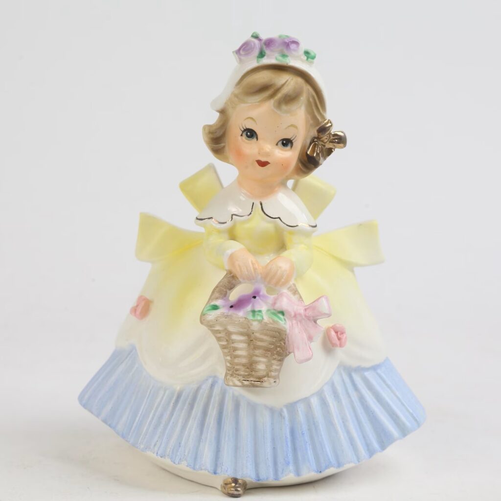 Inarco Girl & Basket of Flowers Vase