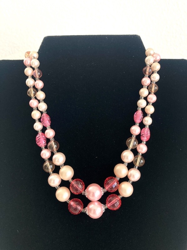 One of the ways Japan rebuilt their economy after WWII was to increase manufacturing. Costume jewelry was stylish at the time. It was also cheap to manufacture and could easily be shipped in large quantities. With wartime restrictions no longer in place, women could purchase fashionable clothing and accessorize accordingly again. This style of necklace was incredibly popular. The short colorful beads emulated the jewelry worn by the movie stars of the day. This look is still popular today.