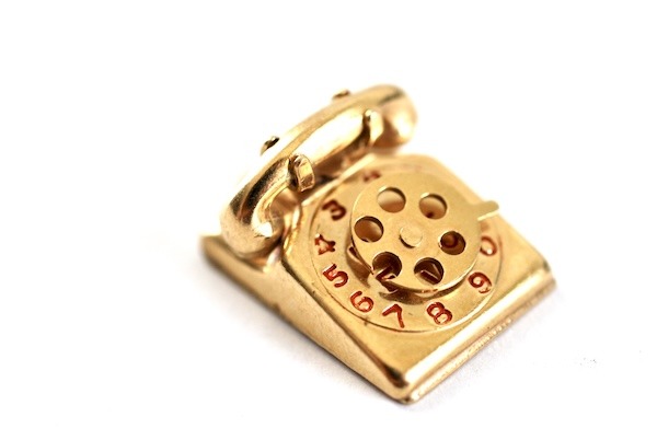 Charm bracelets have come back in style. I’ve seen lots of vintage ones filled with charms collected over time by the original owners. Rather than wearing someone else’s collection, perhaps start one of your own with charms that have meaning just for you. Do you know someone who might appreciate this vintage telephone charm that spells out “I love you” inside the dial? If your love would prefer, it would look just as lovely as a pendant.
