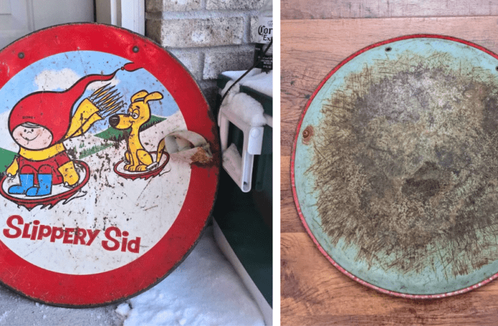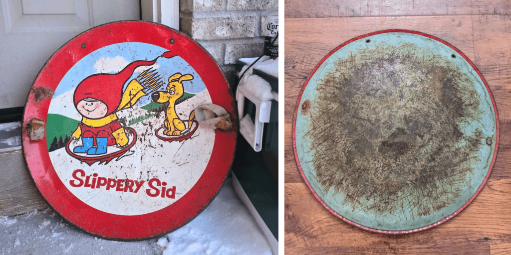 Vintage 1960s Metal Slippery Sid Flying Saucer Sled, $150.