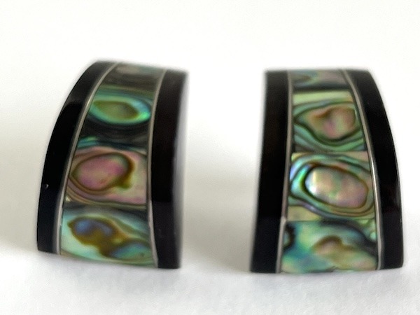 Abalone and Black Curved Post Earrings