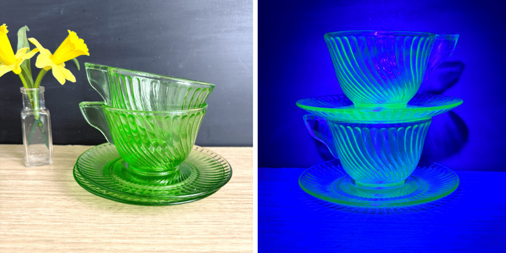 Two Uranium Glass Teacups