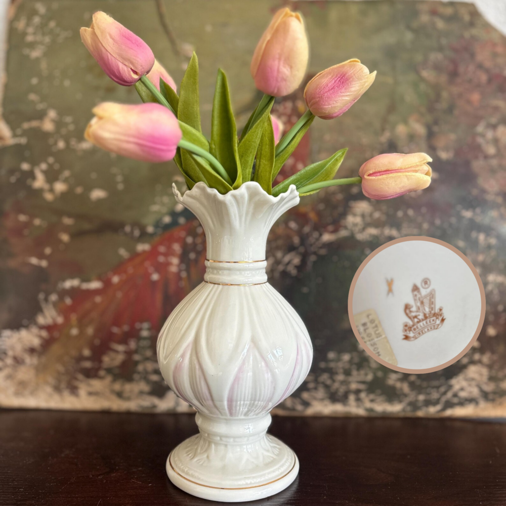 Vintage Belleek Lotus Blossom Spill Vase, $ 39.95.