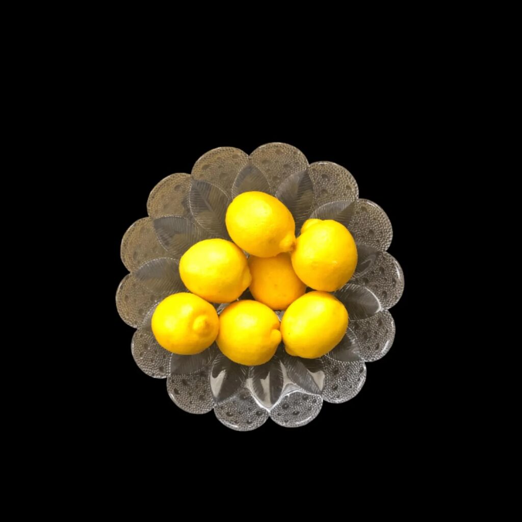European glass knows how to bring the drama. This Medea crystal centerpiece bowl was designed by R. Koschnick and made by Lausitzer Glaswerke in the GDR, sometime in the 1980s before the Berlin Wall came down. Weighing in at 4 lbs., it’s a substantial piece. Patterned with leaves and petals, it’s spot on for spring or for any time you wish it was spring.