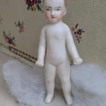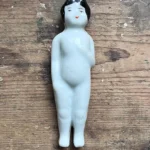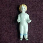 …but the name did not become synonymous with the dolls until the mid 1950s. By that time the dolls had become collectible. Due to their frozen limbs and often unpainted porcelain coloring, doll collectors began calling them Frozen Charlottes. The first use of this description was in the late 1940s. Male dolls became known as Frozen Charlie dolls.