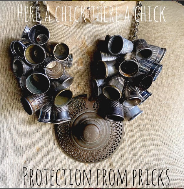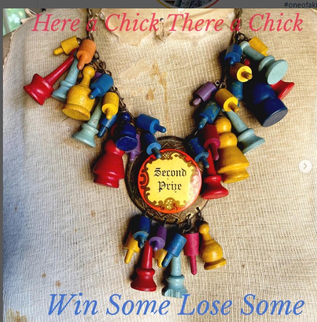 Meet Kerry of Birmingham, AL, owner of Here a Chick There a Chick. Kerry’s story isn’t your usual tale of a vintage seller, she has a bit of a twist that brings a whole new meaning to the idea of re-purposing vintage. Kerry is a maker. She began as many of us do, loving older items and selling so as not to overwhelm her home. But something happened along the way that changed the course of her career. Kerry makes incredible one-of-a-kind jewelry from bits and pieces of found objects, random tiny items that could easily be discarded, and loads of imagination.