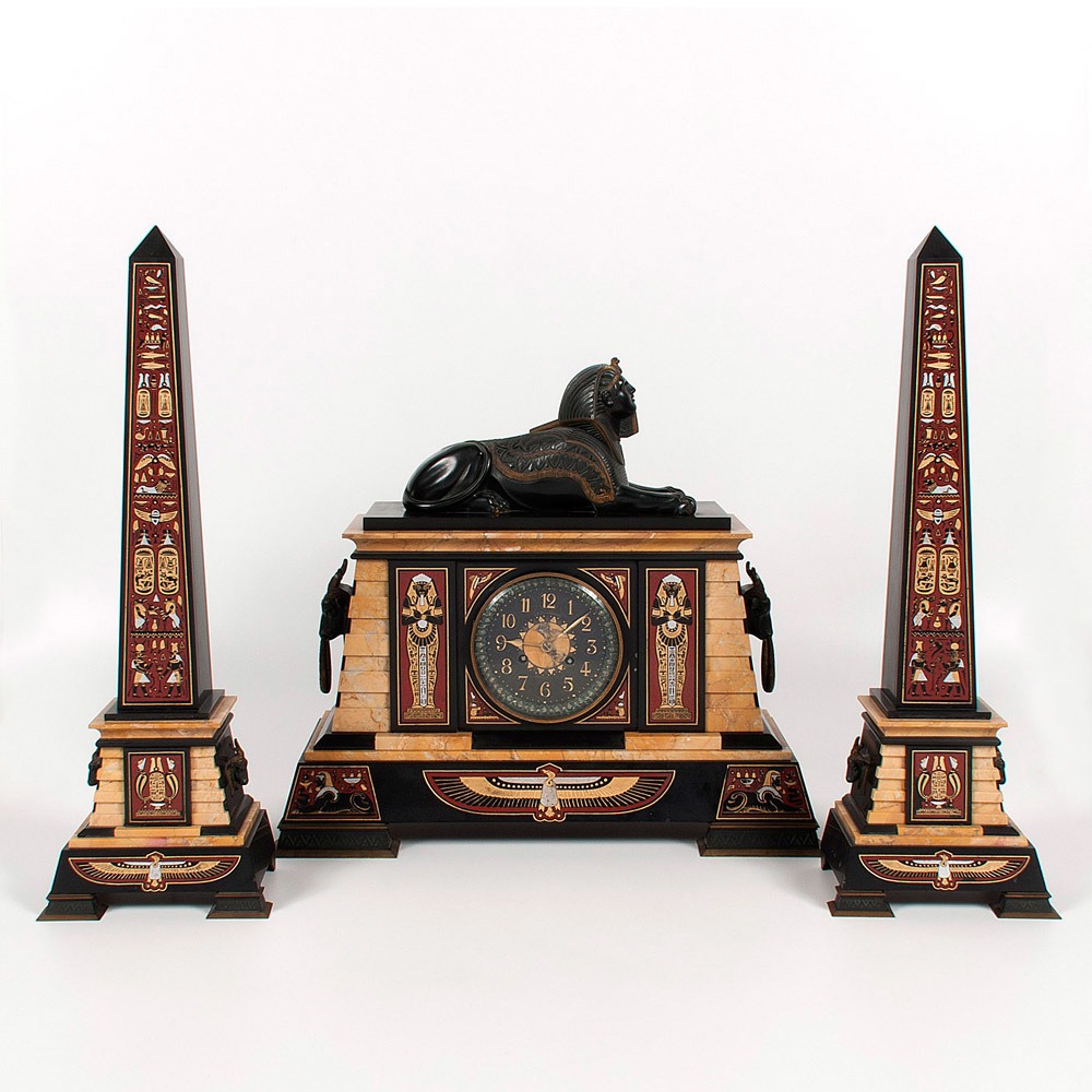 We also can’t resist a good Egyptian-style chair or table, with a classic clock garniture thrown in for good measure.