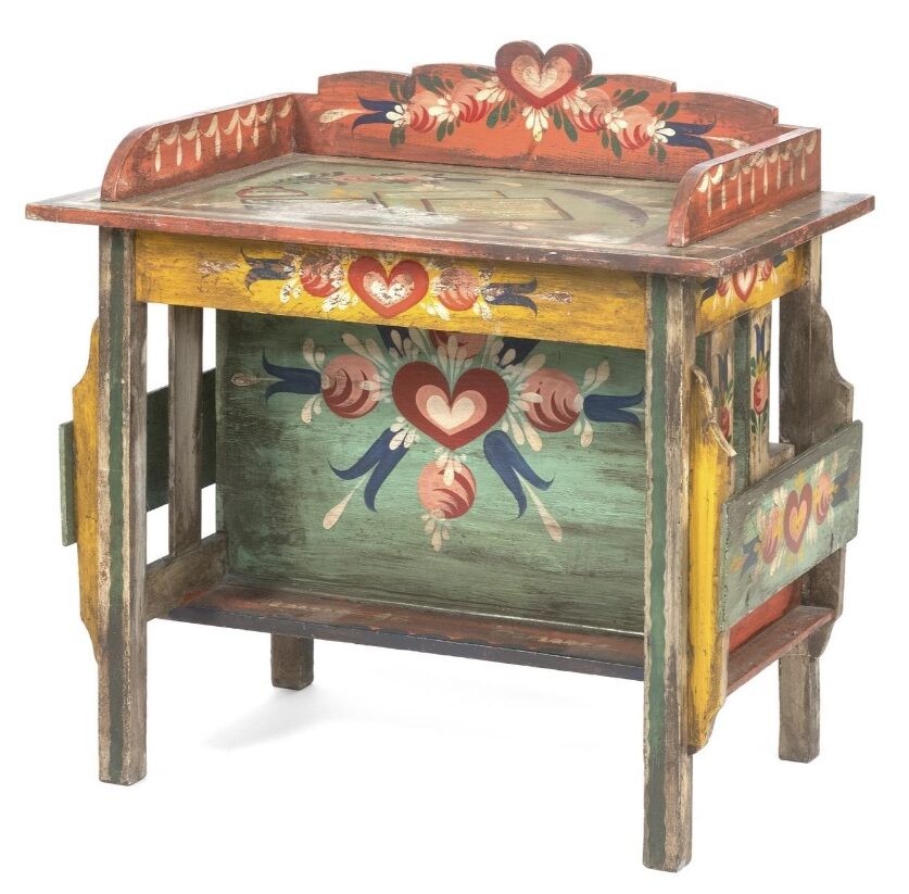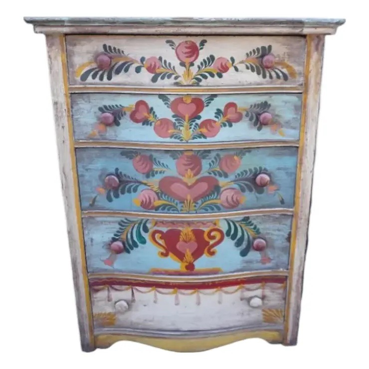 Upcycling furniture has moments. Recent moments are the chalk painting frenzy, and before that the funky colors/sponge painting craze. In the 1930s-1950s, the upcycling world was inspired by folk artist Peter Hunt, a charismatic self taught phenom who boldly refurbished old pieces of furniture into bright, colorful new designs and encouraged others to do the same.