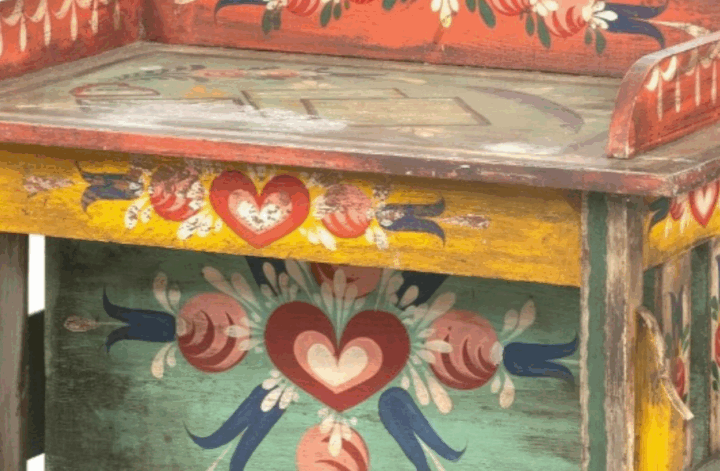- folk motifs like hearts, tulips and other flowers, angels, mermaids and roosters