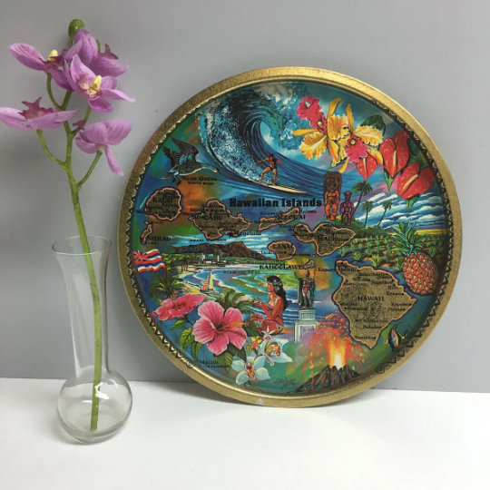 What a joyous blissful read this was. We collect anything Hawaiian and tiki and I came across a Hawaii souvenir tray at my local Salvation Army and it was a most glorious find.