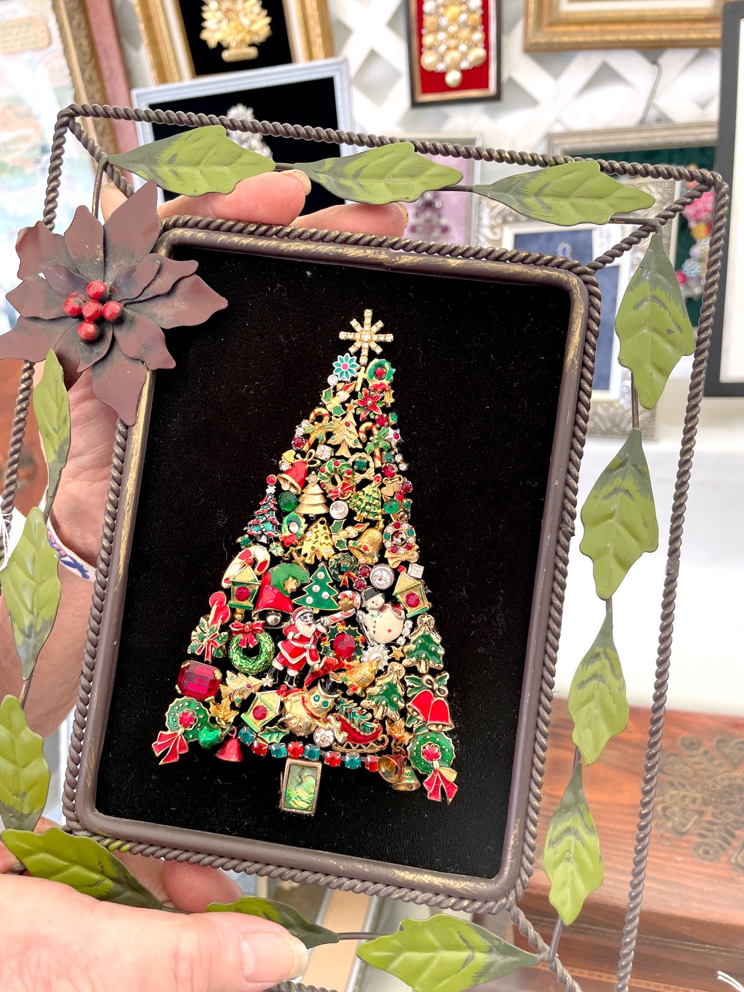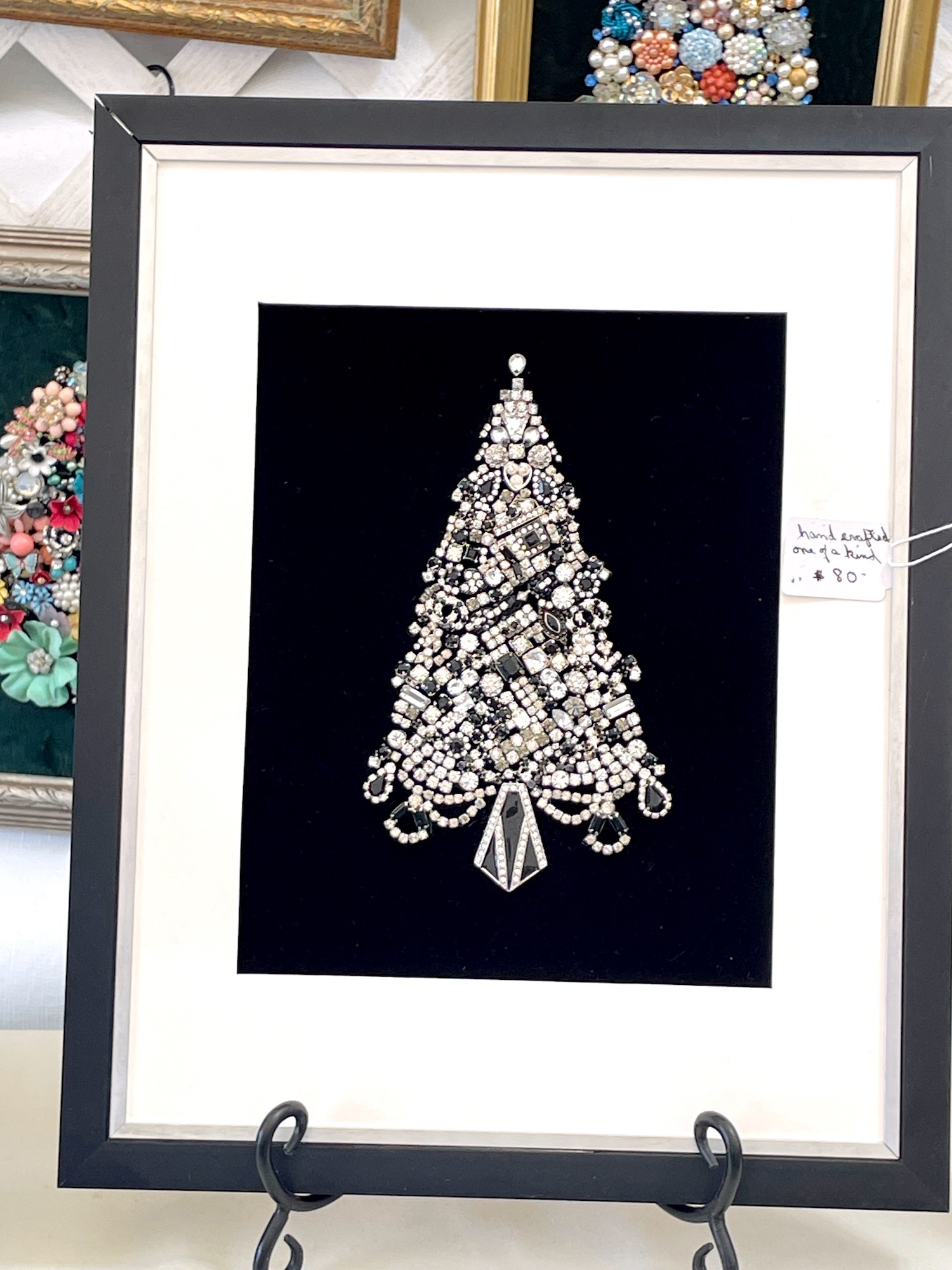 Ann from Anthony Village Antiques in Coventry, RI, makes these sparkly Annie B’s Trees from rhinestone bits and bobs. The workmanship that goes into fitting all the pieces together so beautifully is mind-boggling.
