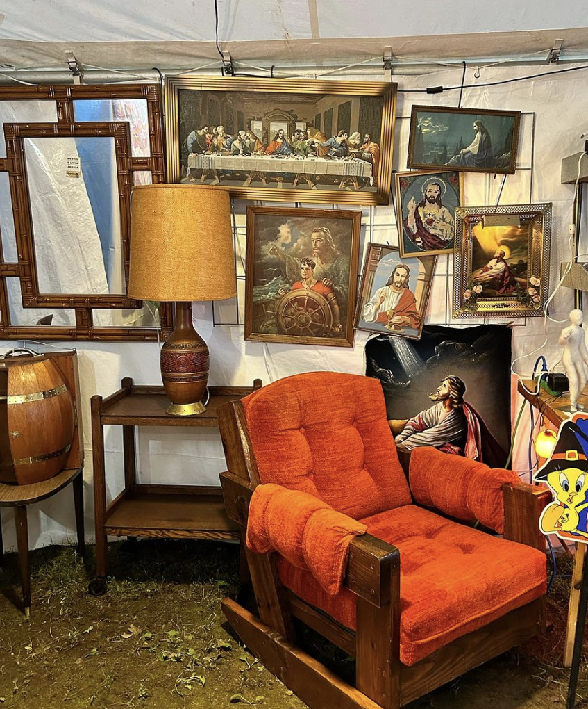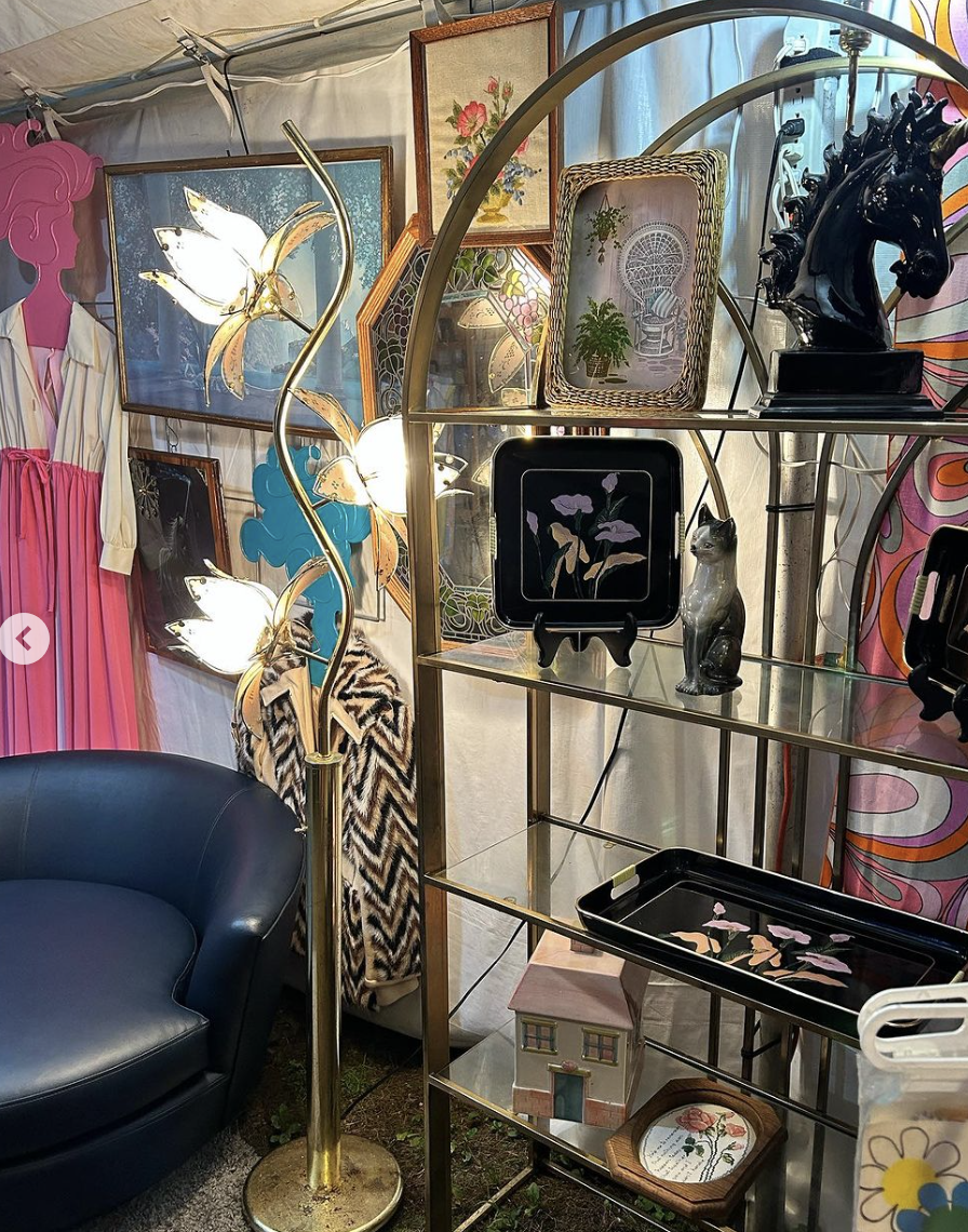 If you like kitsch and fun, look no further than Ryann, holding her show fave gnome. We’d describe her aesthetic as “well that’s awesome.” She left her corporate job to be a full time vintage dealer, and documents her new day (and probably night) job on Instagram @yeahyeahvintage. She’s also on Etsy, but her real showcases are at brick and mortar group shops here in Massachusetts.