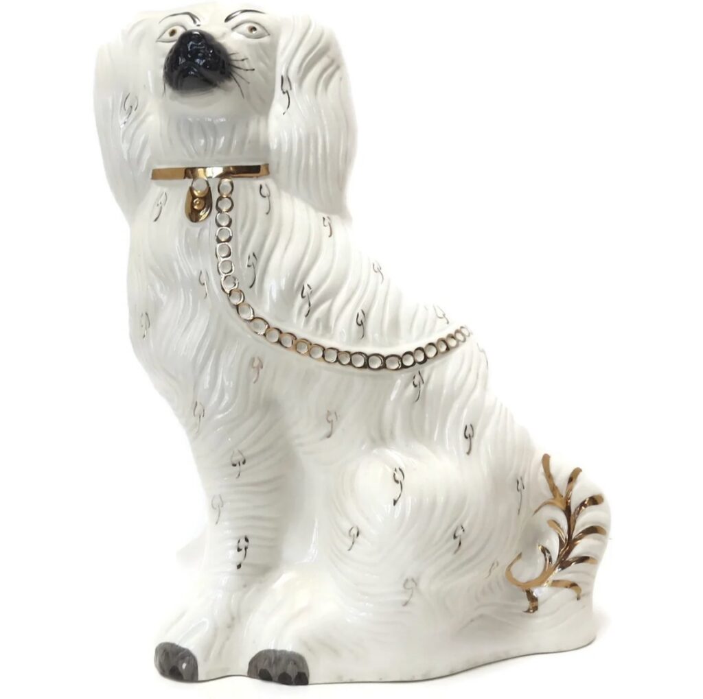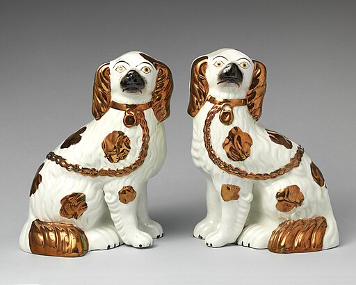 Staffordshire dogs, also called “hearth spaniels” and “fireplace dogs,” have been a part of British decor since the 18th century. They’re called Staffordshire because Staffordshire, a county in England, has been considered the center of British pottery makers due to its abundance of clay, salt, lead, and coal. All ingredients used in manufacturing local pottery were available and ready.
