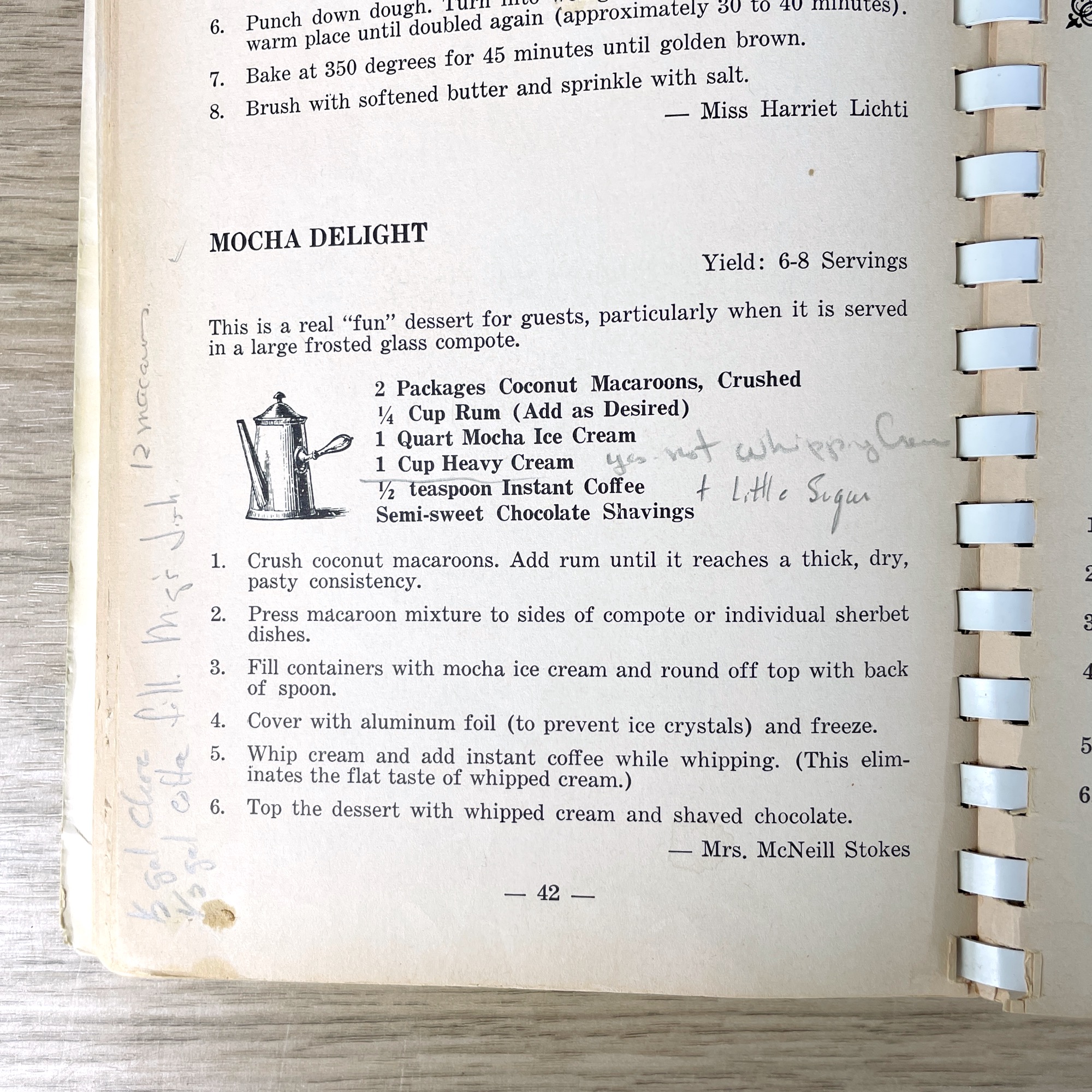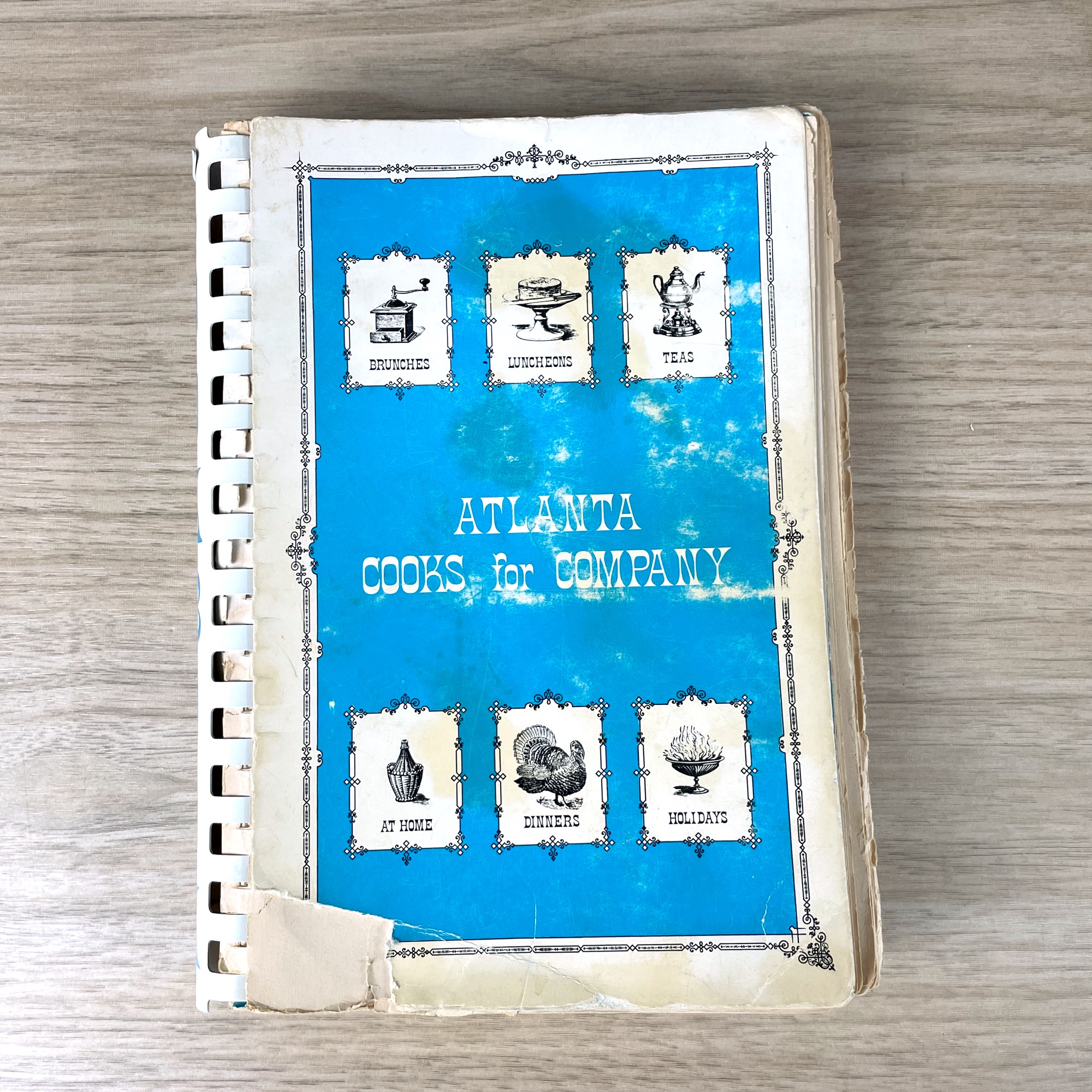 This 1971 fourth printing of Atlanta Cooks for Company from the Atlanta Music Club is what would charitably be called a “reading copy” since the cover has been nearly loved right off it. Notations on recipes are always helpful, much like the comments users add to online recipes.