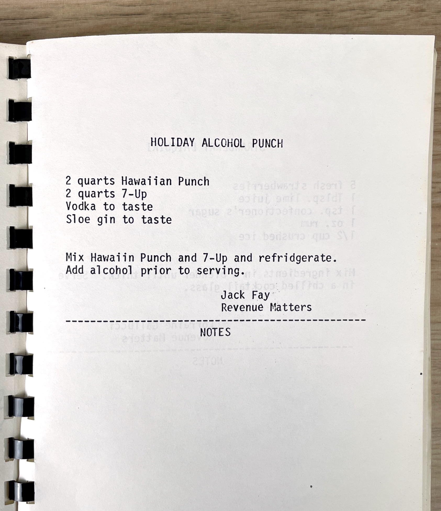 For example, this New England Telephone employees cookbook from 1984, I Wish I Could Cook, has an all time classic punch recipe.
