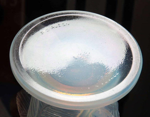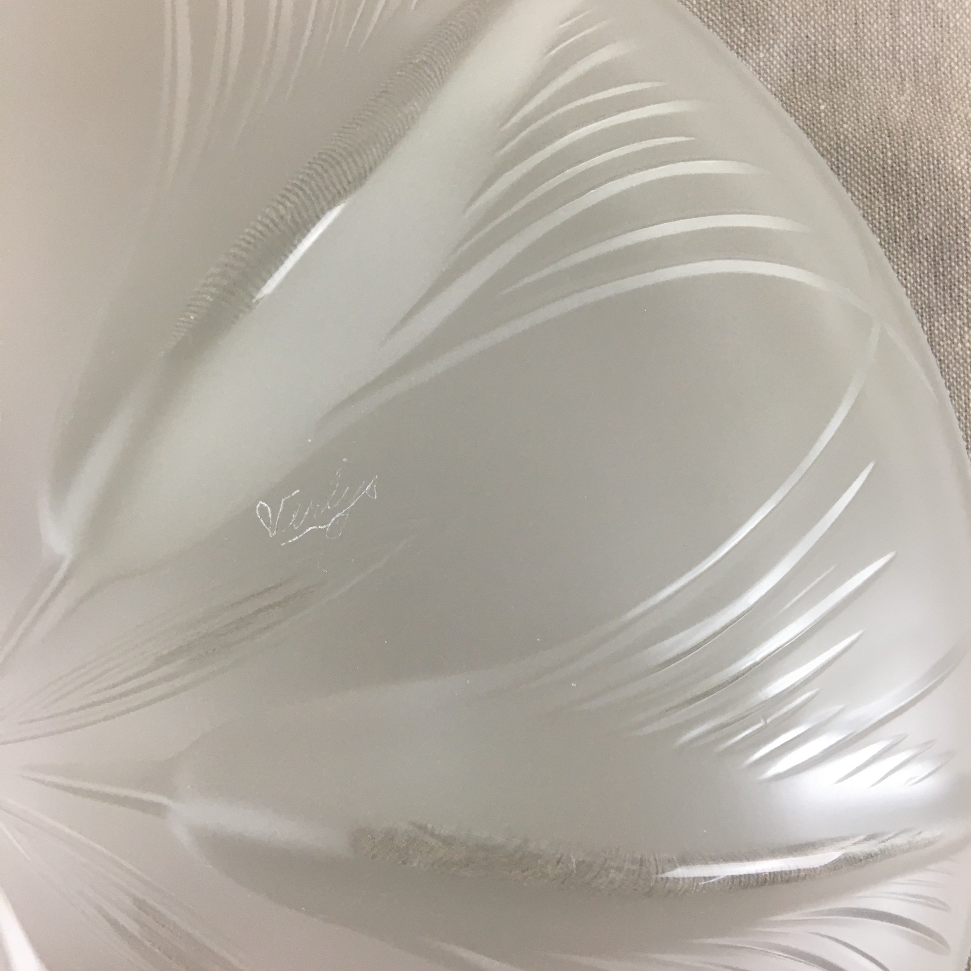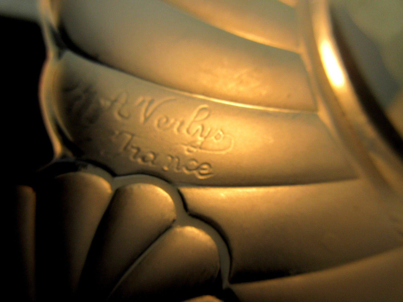While Societe Holophane Francais was busy making headlights, glassmaker Rene Lalique was dazzling the world with his art deco art glass designs. It didn’t take long for Societe Holophane Francais to notice what Lalique was up to and launch their own art glass subsidiary, the Verriere d’Andelys (or Andelys Glassworks). The name “Verlys” is a mashup of “Ver” from Verriere and “lys” from Les Andelys. And that is how in 1925, the first of the two Verlys glass companies was born, specializing in intricate blown cased-glass vessels. By the 1930s, they switched to producing molded glass closer in style to Lalique’s work. Matte frosted and opalescent glass, predominantly colorless, with motifs similar to Lalique including flowers, birds and deco-inspired geometrics.