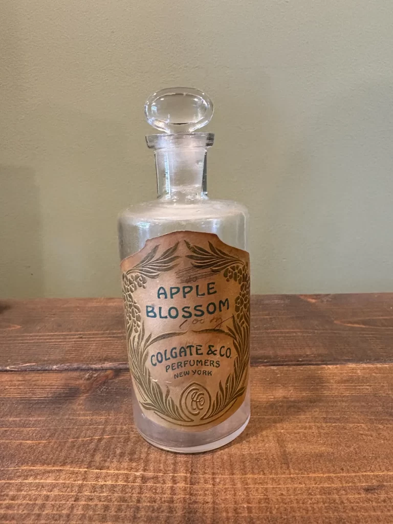 This lovely antique bottle once contained the essence of apple blossoms. An apple orchard in the spring has the most enticing sweet fragrance to attract bees and other pollinators, with a slight hint of apple hidden in its scent. The bottle is embossed with the Colgate & Co. logo and it still has a label and stopper. A great gift for an antique scent bottle collector, which can be found on Etsy for $45 in the LenettsCollections shop.
