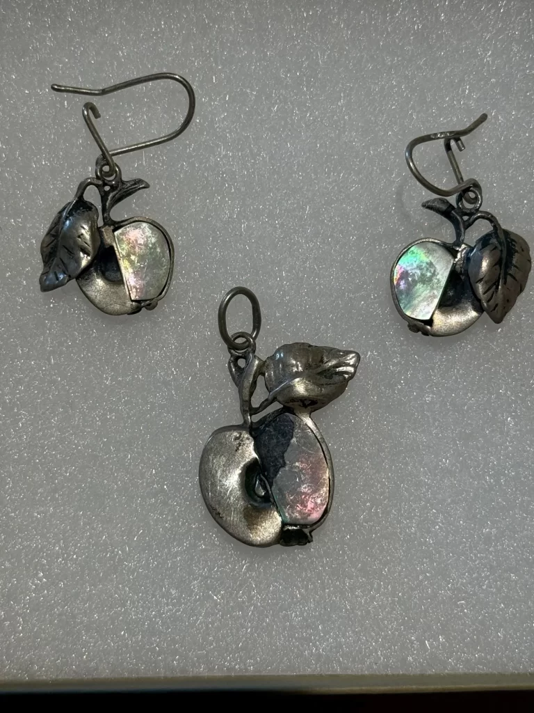 Sterling & Abalone Apple Earrings and Pendant