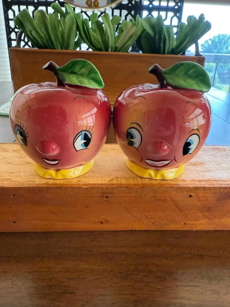 Are you drawn to these funny apples giving each other the side eye? Spice up the kitchen, or should I say Kitschen, with these two smiling faces. I find it to be more difficult to find anthropomorphic items in the wild lately because this sort of collectible is wildly sought after. Go to Etsy and AntiquesMontana to pick these two up for $55.
