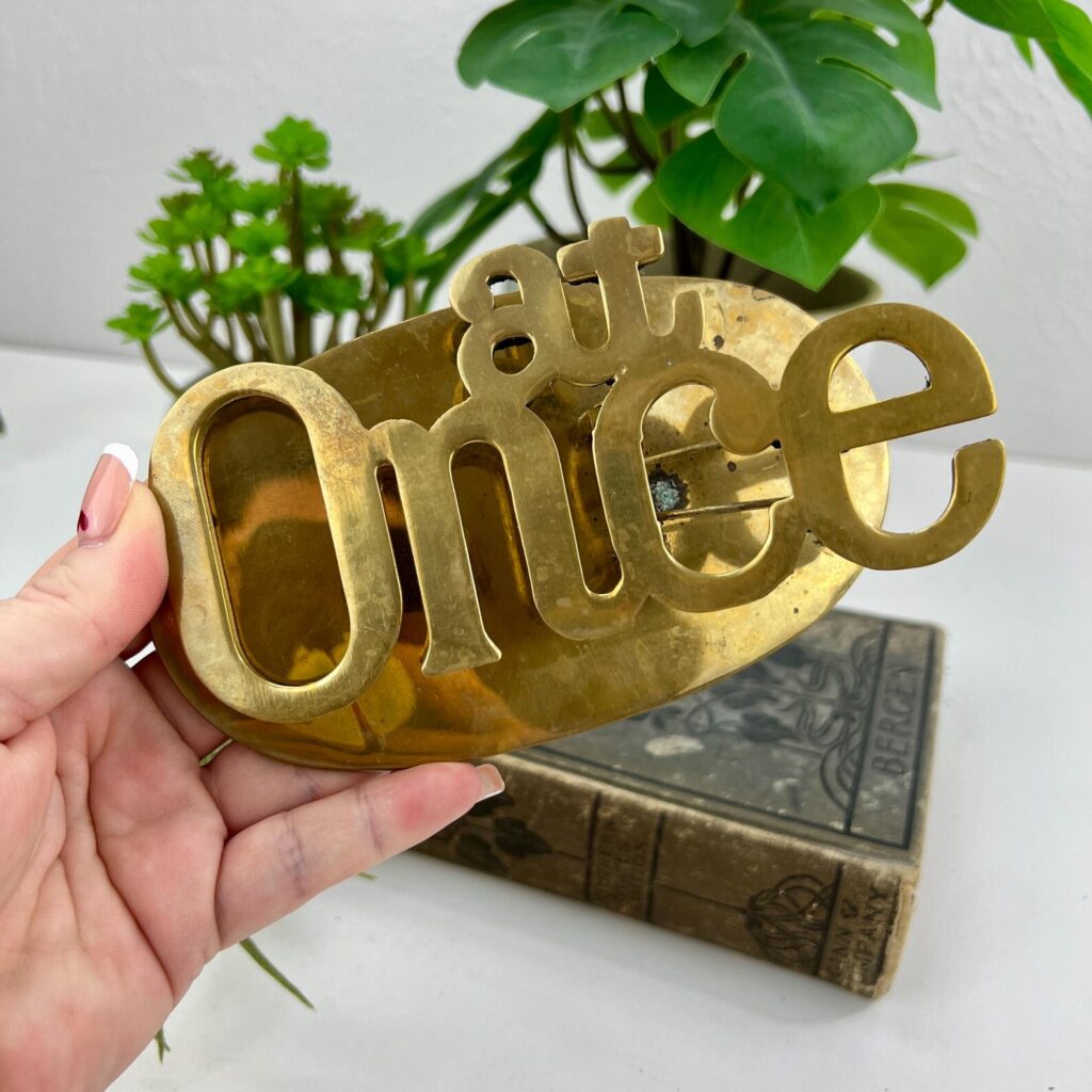 Oversized brass “at once” clip for holding your urgent papers, $31.75, from Clover Hollow Vintage.