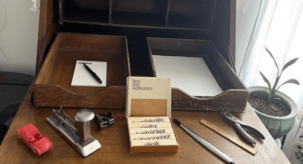 Typewriters, fountain pens, and staplers, oh my! Vintage office supplies can be useful and fun to collect. While few of us still use typewriters; staplers, pens, envelopes, and paper sorters are still useful items that can be had for a relatively low price.
