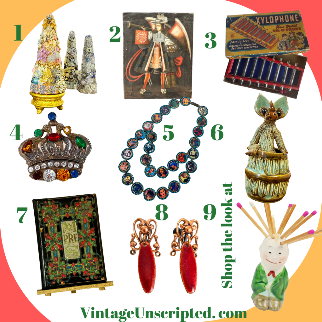 One of our missions is to shine a light on other vintage sellers. We truly believe the rising tide floats all boats. One of the ways we do that is with collages of interesting things, based around an interesting theme. Think of our collages as vintage eye candy. I Am Woman and Diversity were two of our themes this year, you’ll find links to all the items in the posts themselves.