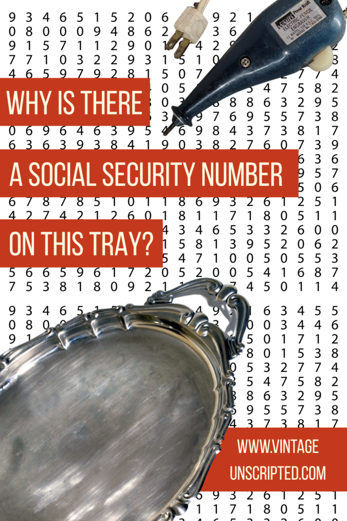 Sometimes a question that we need the answer to leads to a blog post. Like this big beautiful tray with a social security number etched into it. Why? How? And does it matter? (It does.)